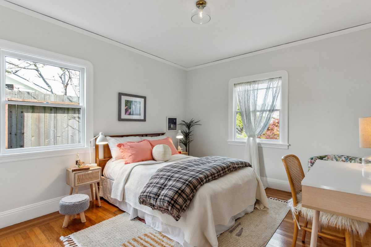 This attractive Berkeley bungalow in the Westbrea neighborhood was completely refreshed by VisionWorks Home Design, and included new kitchen cabinet area, new appliances, new countertops, new range hood, new hardwood floors, floating shelves, interior and exterior painting, new light fixtures, electrical upgrades, general repairs, and beautiful landscaping.